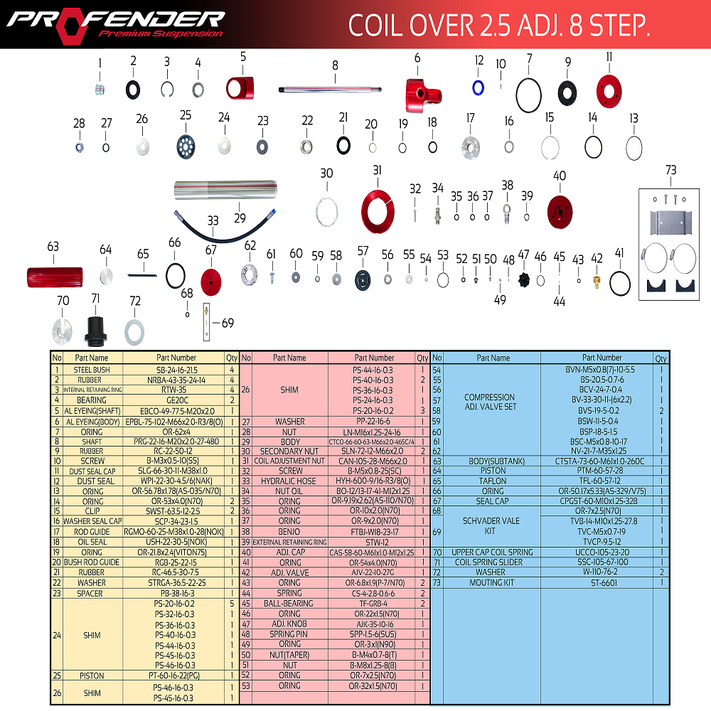 All spare parts are available and Profender can rebuild, service or revalve these shocks. Or if you have the time Profender can supply you with shims and spares if needed to do any tuning that may be required.